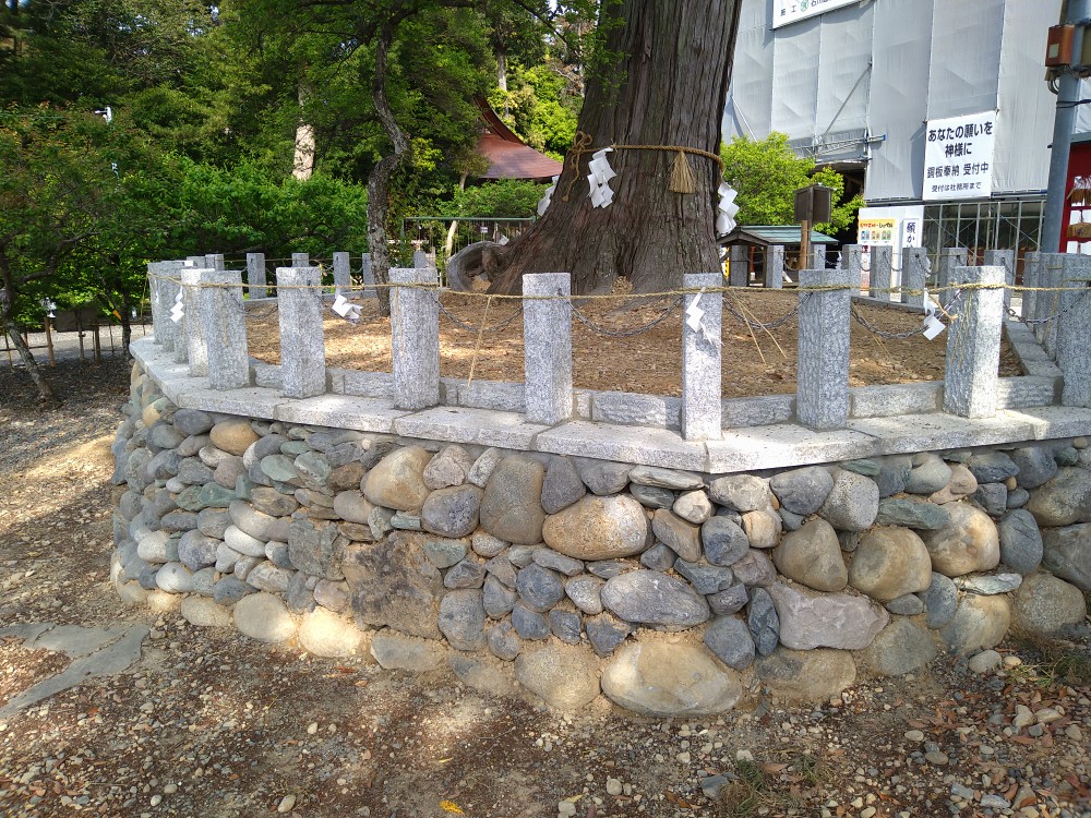御神木まわり(4月24日) 参拝 2021.04.242024.01.19 工事前の御神木まわり 先日より行われていた、御神木周辺の養生工事が完成しました。 まわりの石垣を拡張したことで、むきだしになっていた根が土に覆われるようになりました。 拡張されて周囲の石垣も新調されました。