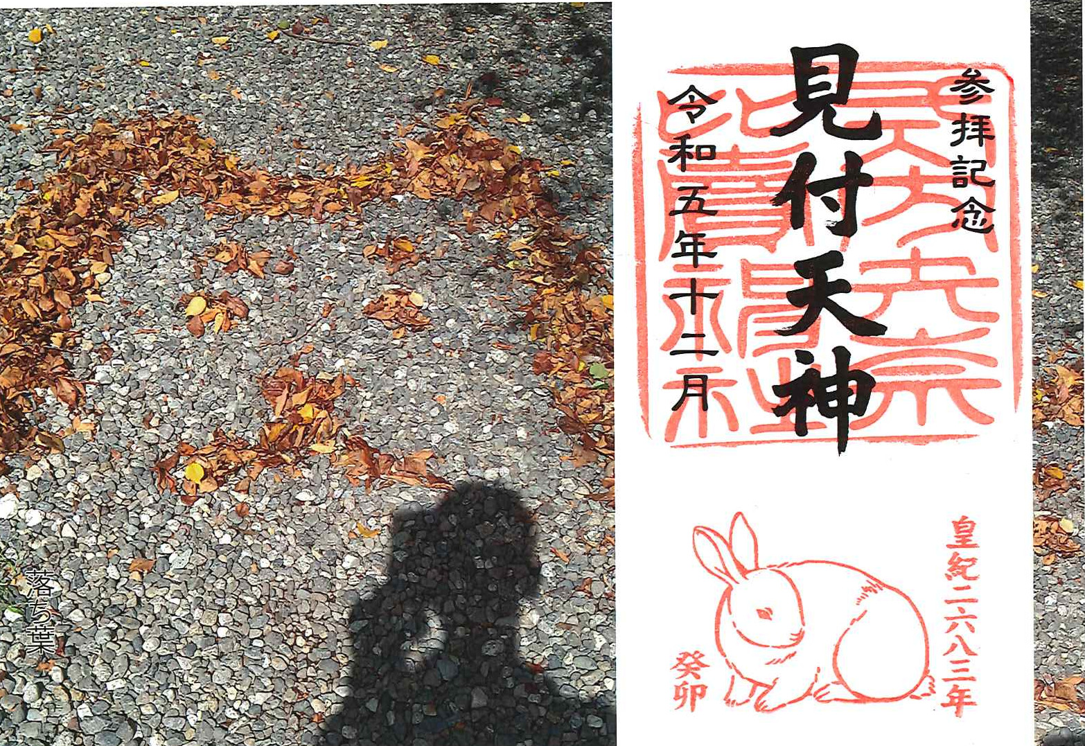 参拝記念 限定御朱印(令和5年12月1日より) 限定御朱印 2023.11.24 令和5年12月1日からの参拝記念 限定御朱印です。 今回のテーマは「落ち葉」です。 この御朱印は数量限定となりますので、無くなり次第の終了となります。
