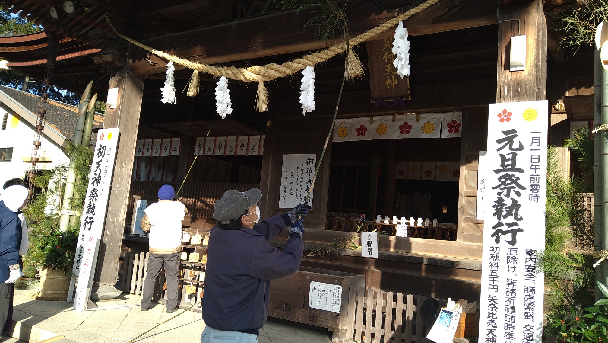 煤払い(令和5年12月25日) 祭典 2023.12.262023.12.28 お正月を迎えるにあたり、12月25日に恒例の煤払い(すすはらい)を行いました。 総代や宮仕えの皆さんが、拝殿でご祈祷を受けたあとに境内の建物を、すみずみまできれいにお掃除してくださいました。