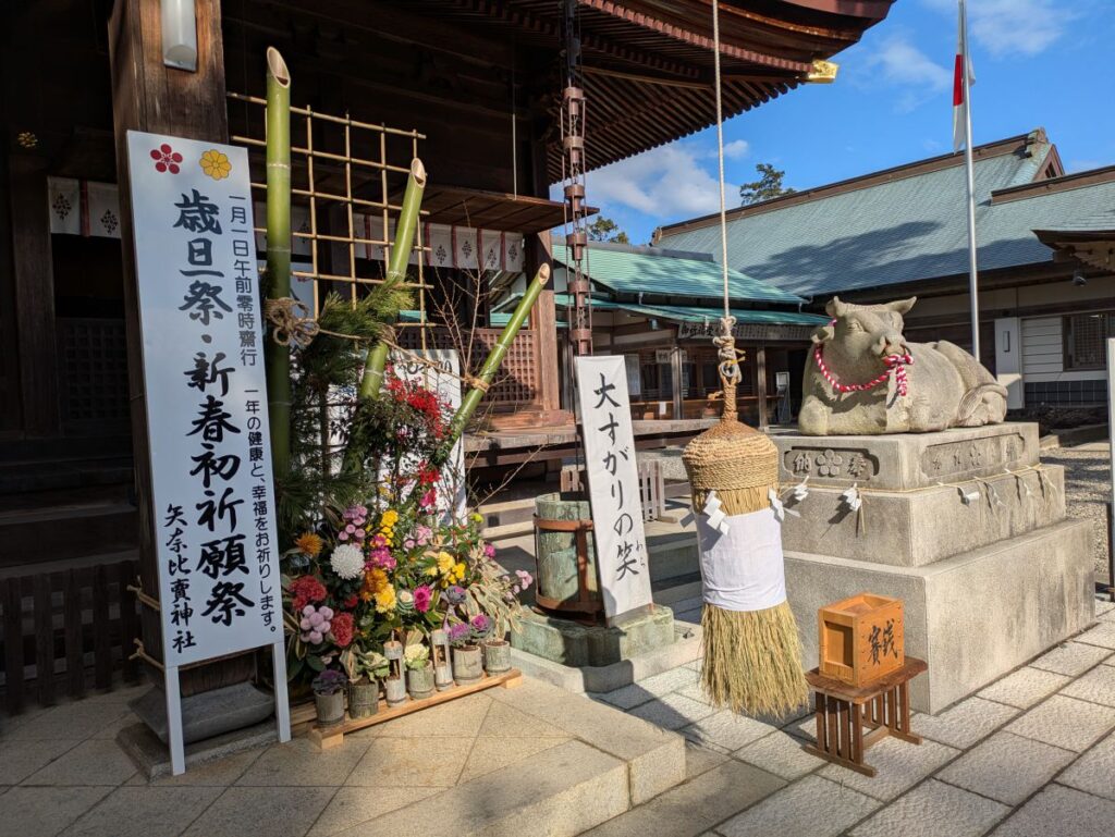 新しい年の幕開けが、皆様にとって希望に満ちた「末広がり」の年となりますよう、神職・巫女、そして門松を設営してくださった宮仕え一同、皆様のご参拝を心よりお待ち申し上げております。