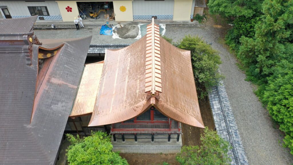 足場の解体が終わり、新しい屋根の御本殿がお目見えとなりました。