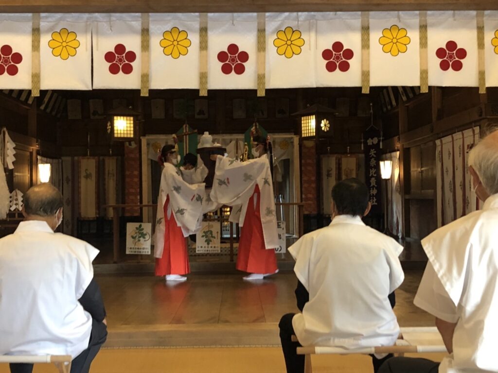 令和4年7月25日 午後6時より、「本殿遷座祭」をとりおこないました。神社責任役員や先供世話方のご奉仕・御参列のもと無事齋行いたしました。